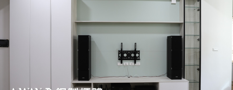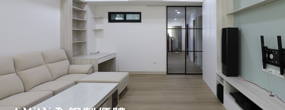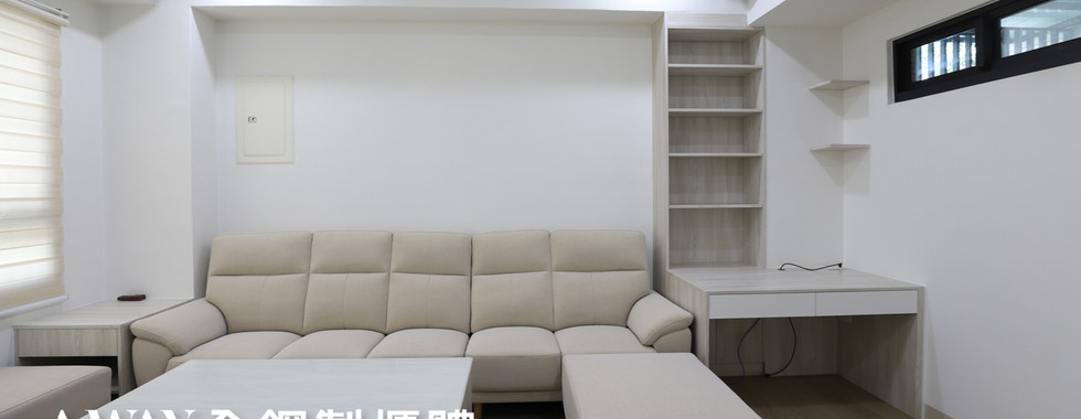 #客廳 電視櫃、收納櫃、書桌都以淺色系去製作,簡單實用、耐看又舒服。